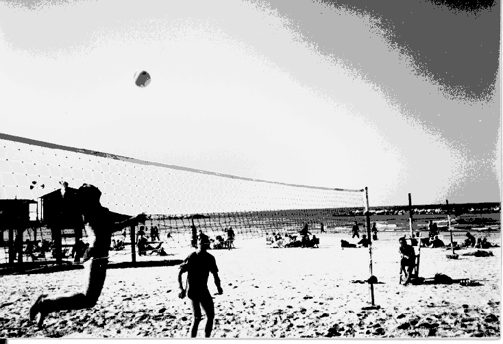 An eery photo of Rafi (in the air) and Partner Dov Ziv on Tel Aviv beach. Other volleyball-related pictures: